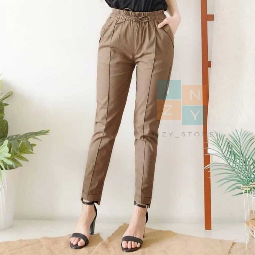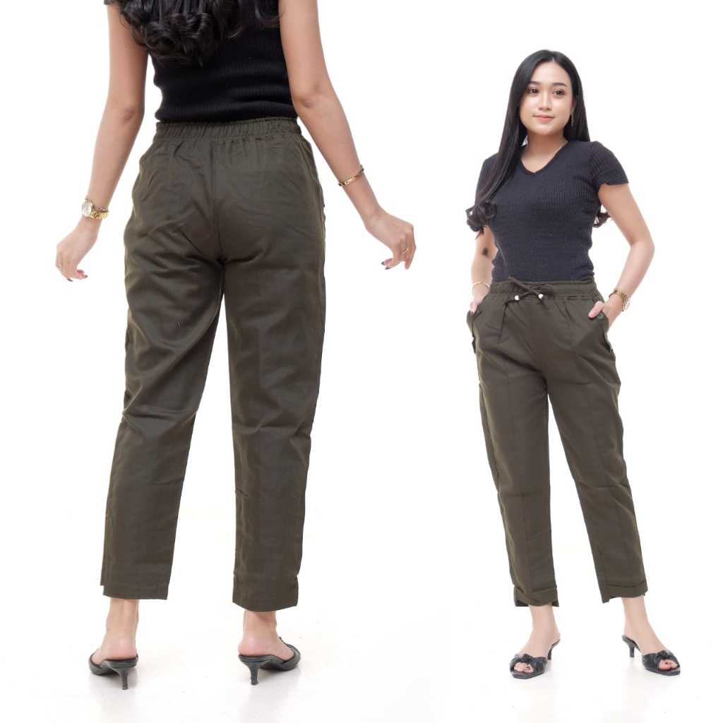 Baggy Pants Tali / Ada Size Untuk 80 kg / Celana Panjang Wanita Pinggang Karet / Celana Kerja Formal Basic Nyaman