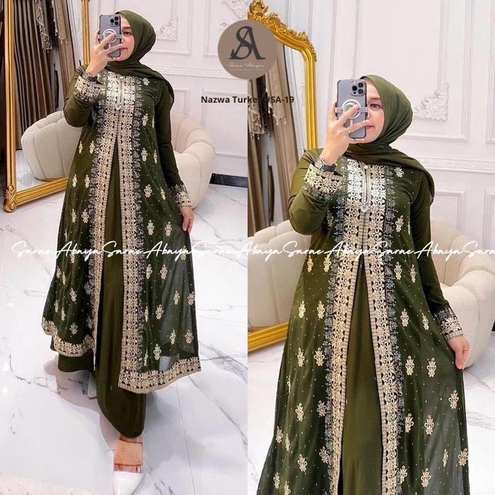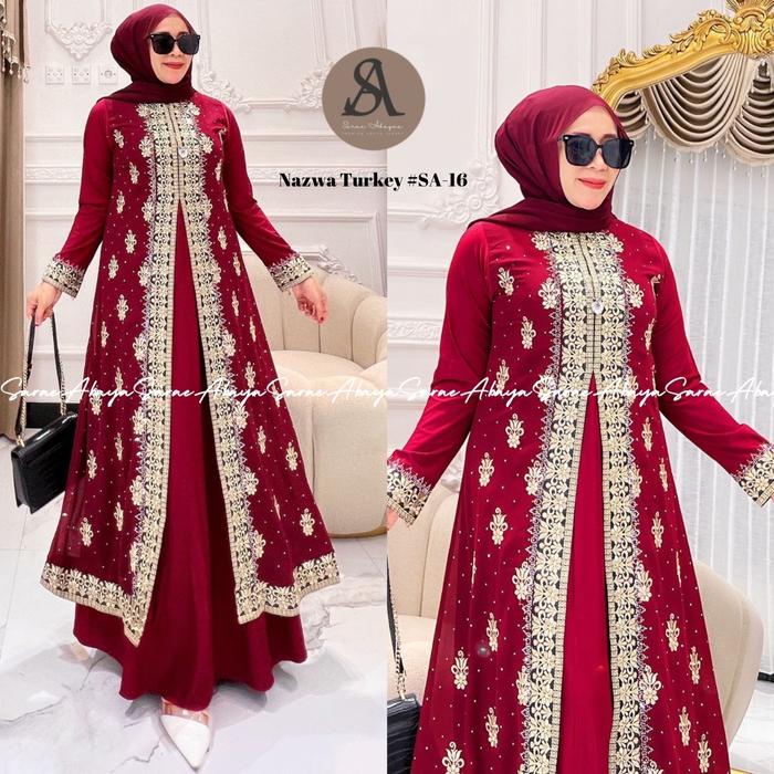 Sarae Abaya Turkey Premium Nazwa #Sa-16 Bordir Payet Ceruty Cantik Muslim Mewah Pesta Arab Turki Gamis Wanita Dress Dewa