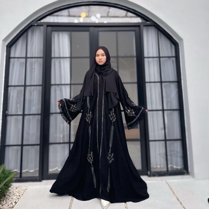 Hania Abaya By Syakila // Abaya Mesir Lokal Terbaru Glamour Gamis Umbrella - Hitam, S