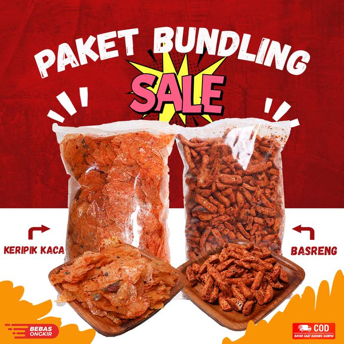 Paket Bundling Basreng Pedas Daun Jeruk 500Gr Dan Keripik Kaca 500Gr - Snack Makanan - Food