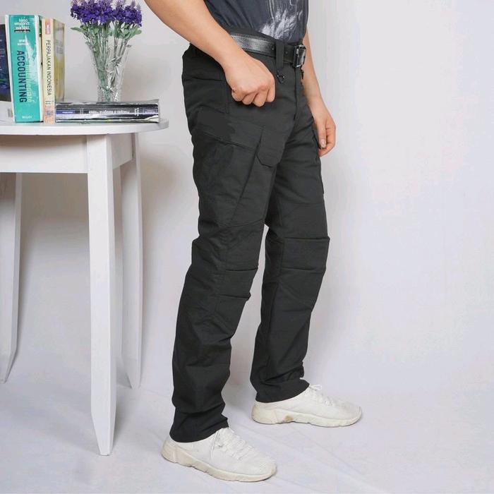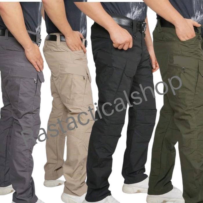 Celana Cargo Panjang Pdl Lapangan Tactical Pants Santai Polos Outdoor Katun Tebal Kain Kerja Karet Hijau - Hitam, 28