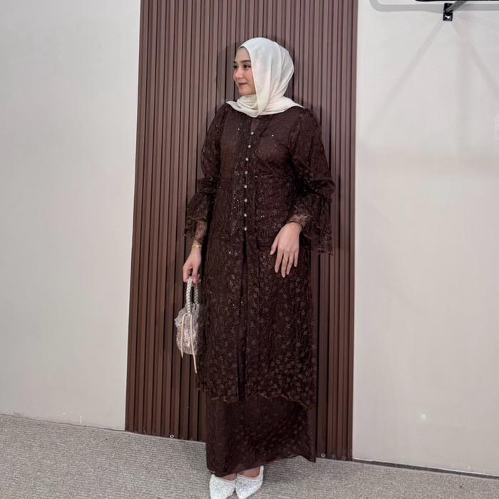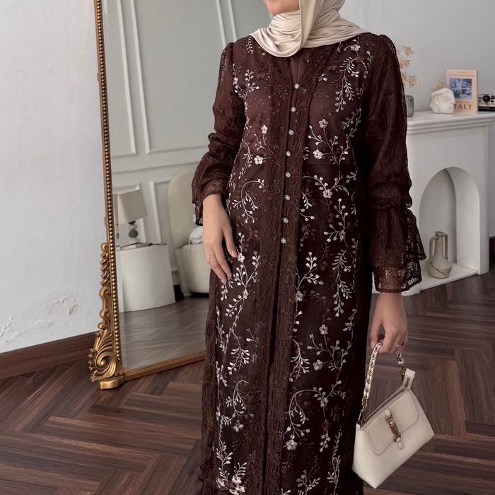 Stuffcisy- Shafana Dress Outer Brukat Sapto Chantily Baju Kondangan Terbaru Fashion Muslim Motif Wanita Basic - Black Mo