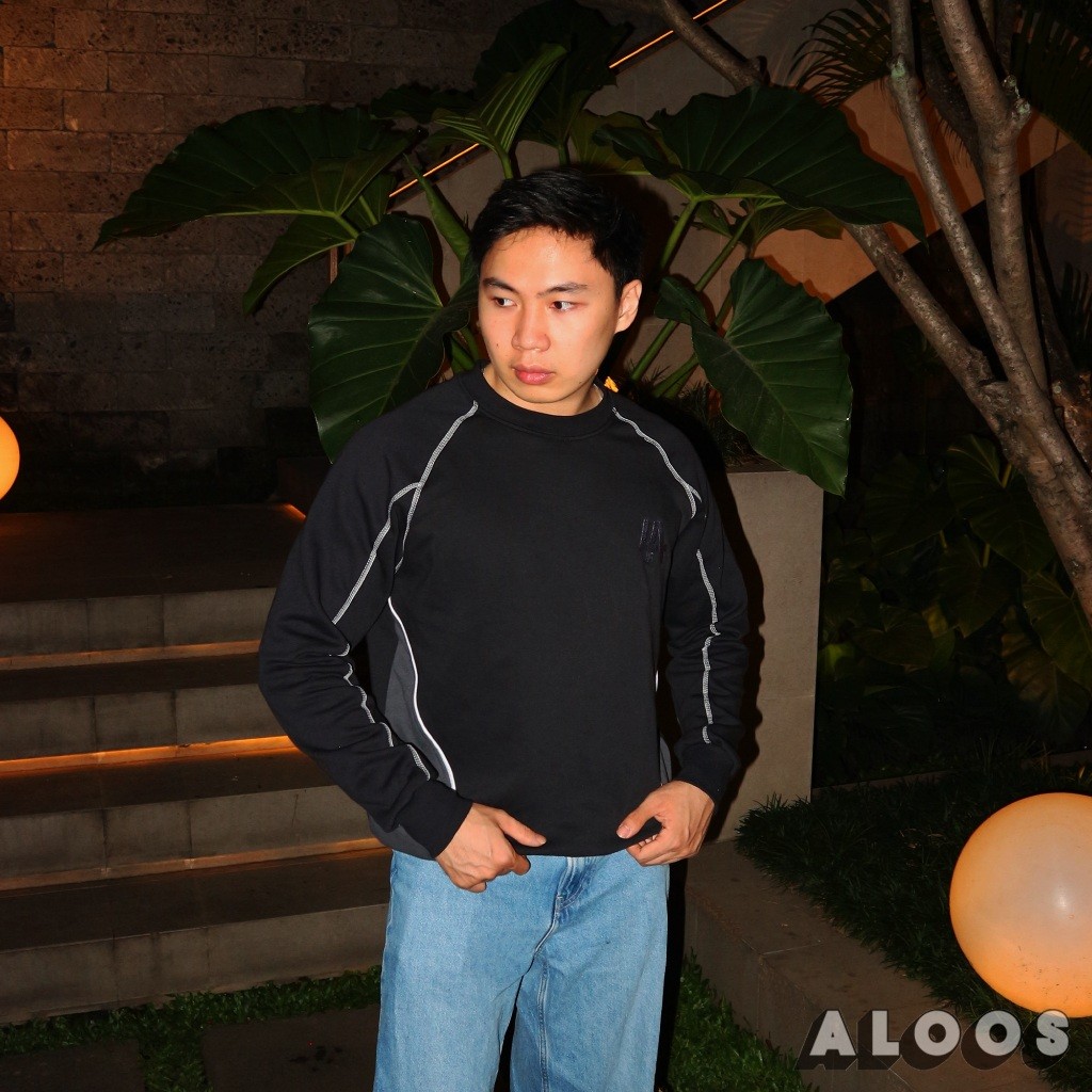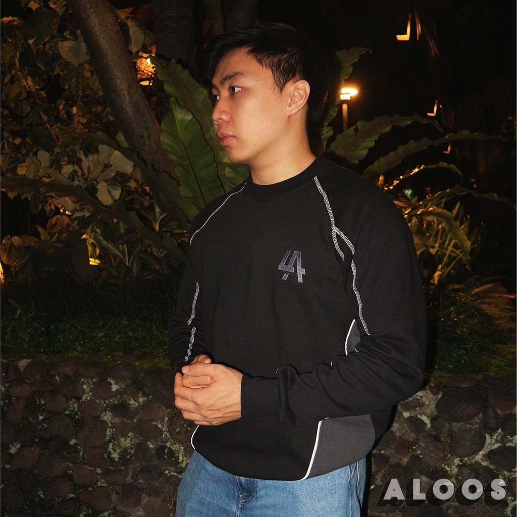 Aloos Sweatshirt - Black Charcoal Edition | Crewneck Kombinasi Lining Overdeck | Bordir / Embroidery