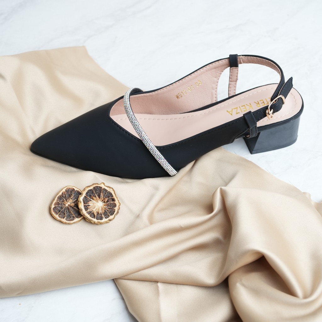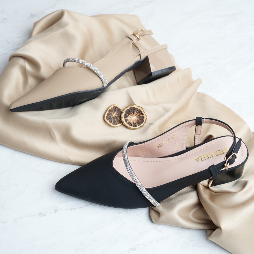 Peter Keiza Sepatu Sandal Wanita Slingback dengan Tali Tengah dan Hak Tahu WB13-01