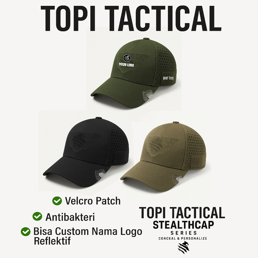 Topi Tactical Pria l Topi Custom Reflektif – StealthCap –, Bisa Custom Logo & Nama