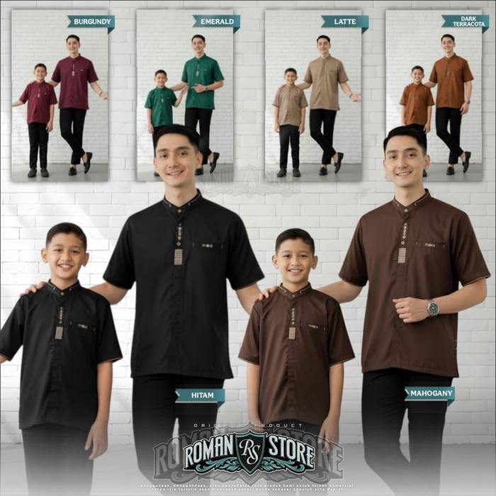 Roman Store Baju Koko Couple Ayah Anak Laki Laki Usia 2-10 Tahun Lengan Pendek Motif Jenna Bahan Toyobo Import Terbaru 2