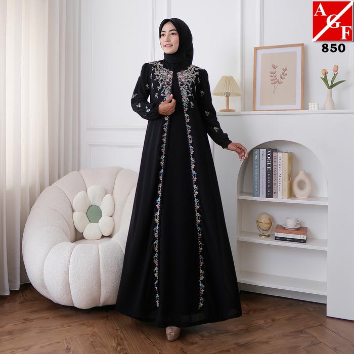Agnes Hijab - Aiza Dress Gamis Lebaran 2026 Terbaru Abaya Hitam Bordir Bunga Baju Muslim Wanita Mewah Elegan Pengajian M