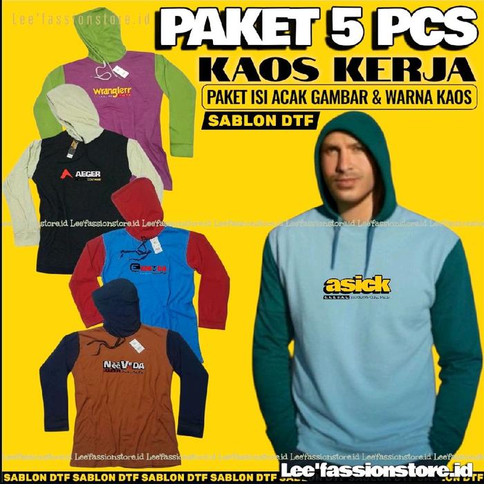 Paket 5 Pcs - Kaos Tani Kaos Basahan Kerja Proyek Kaos Kuplok Lengan Panjang Sablon Dtf Anti Luntur Awet Campur Gambar K