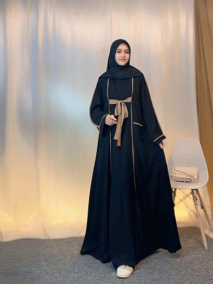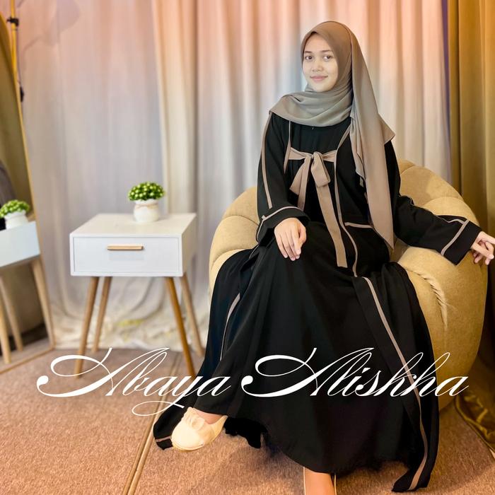 New 11.11 Aliskha Abaya Jetblack Free Hijab Gamis Muslim Wanita Syari Lembut Dress Arab Hitam Mewah Turki Maxi Bordi