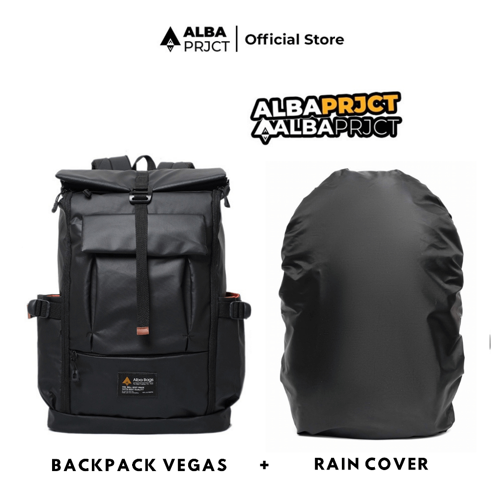 Alba Project I (Paket Bundling) Backpack Vegas + Rain Cover - Tas Ransel Vegas 1.0 - Tas Ransel Pria Waterproof Tas Outd