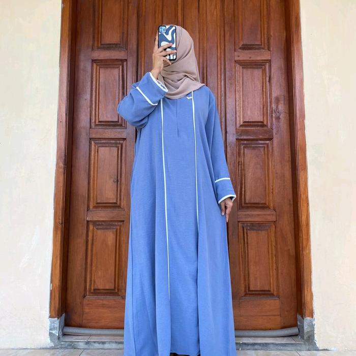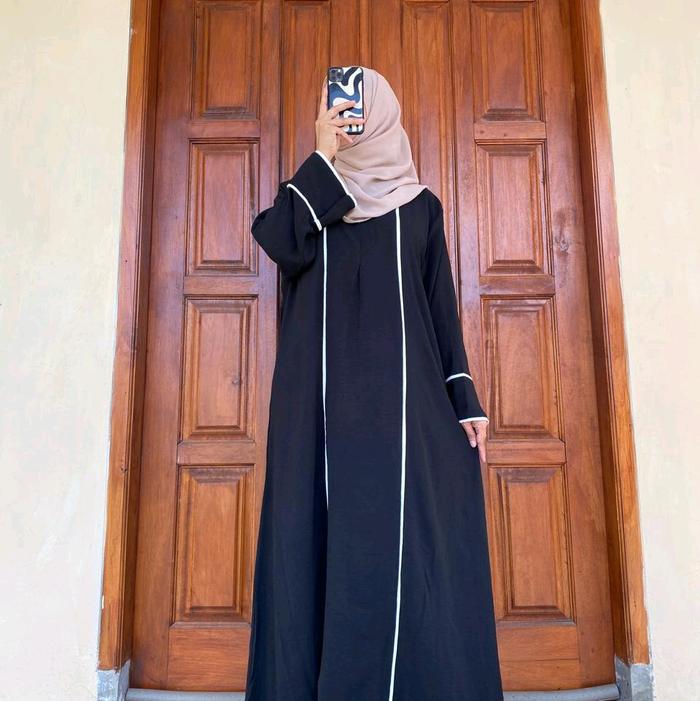 Abaya Hameeda | Abaya Remaja Dewasa | Abaya Lis Putih | Gamis Muslim Wanita Crinkle Airflow Hitam - Hameeda Olive, Ld 12