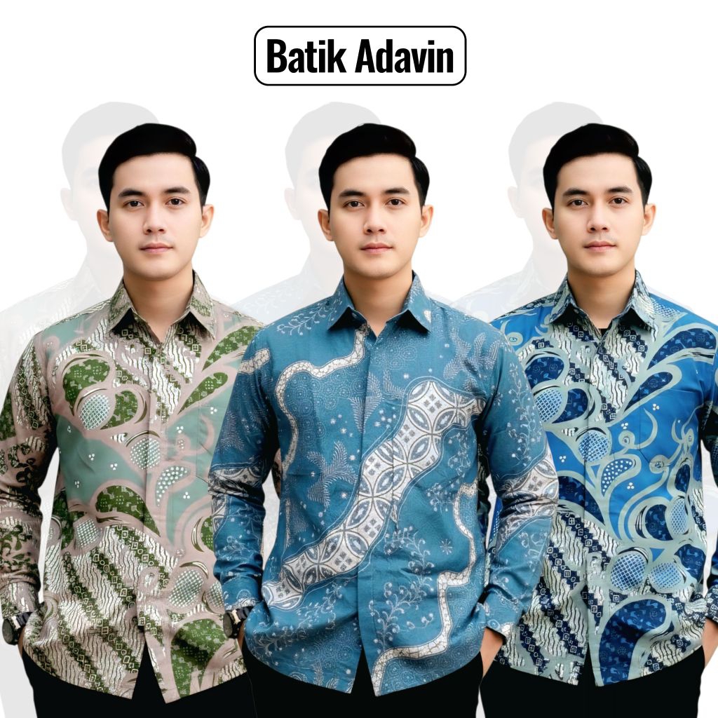Batik Adavin Kemeja Batik Cowo Warna Burgundy Lylac Navy Adem Lembut Batik Lengan Panjang Exclusive