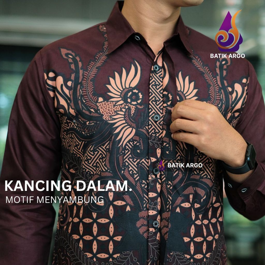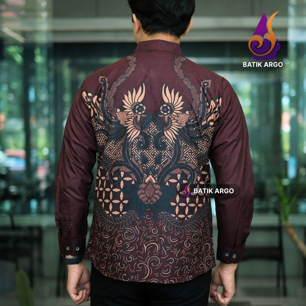 Batik Argo Prabuwira Burgundy Kemeja Batik Pria Slimfit Lapis Furing Katun Lengan Panjang Untuk Anak Muda Kondangan Lama