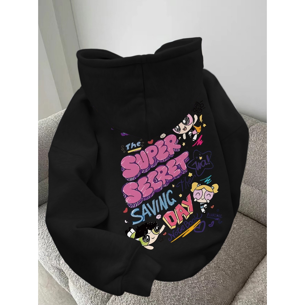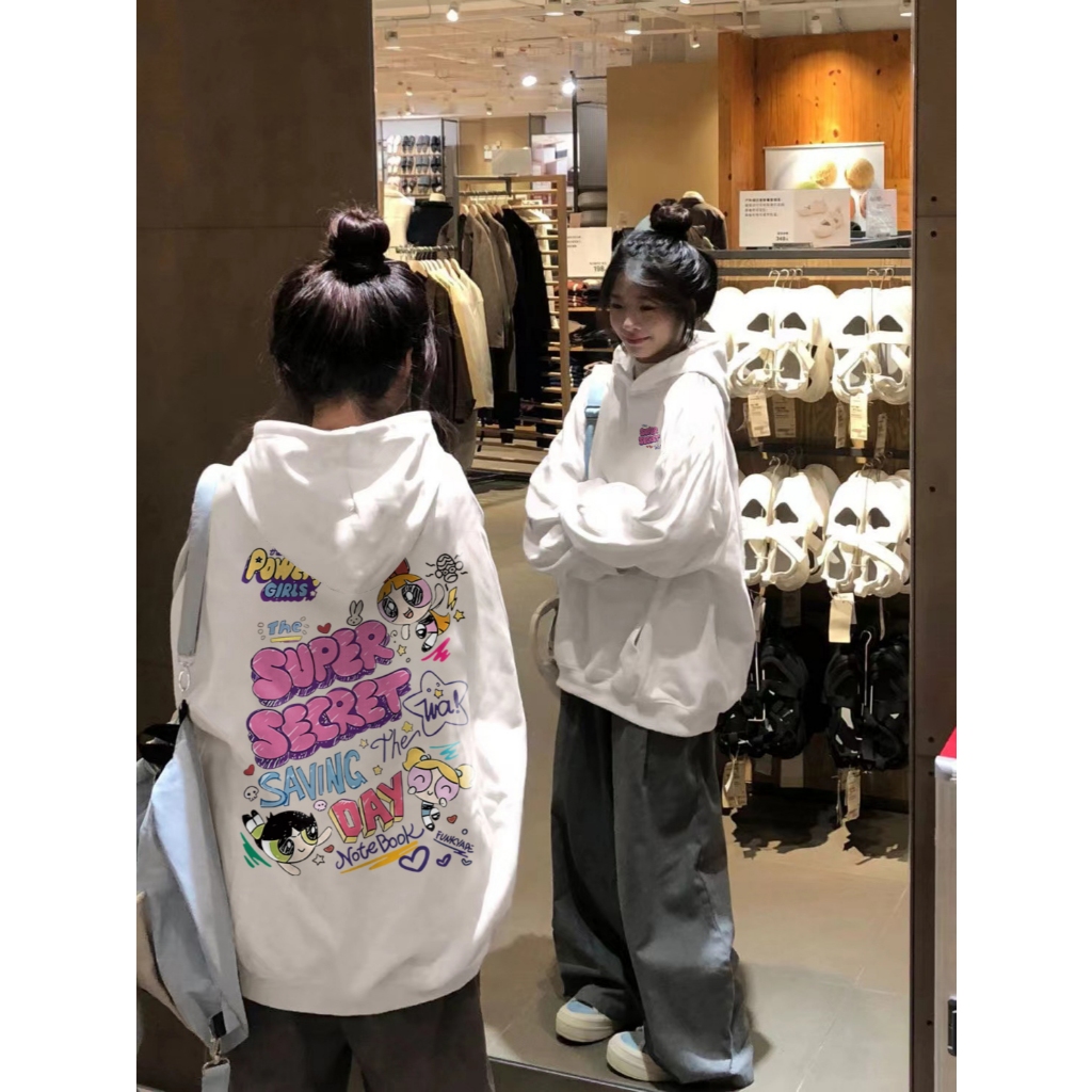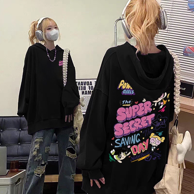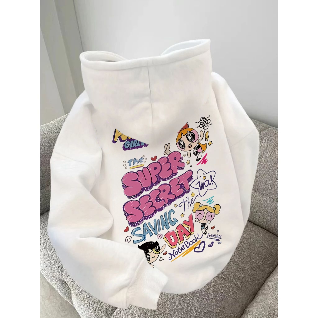 Forteid Hoodie Sweater Wanita Oversize Pola Kartun Powerpuff Girls Korean Style Baju Wanita Kekinian/Baju Wanita/Switer