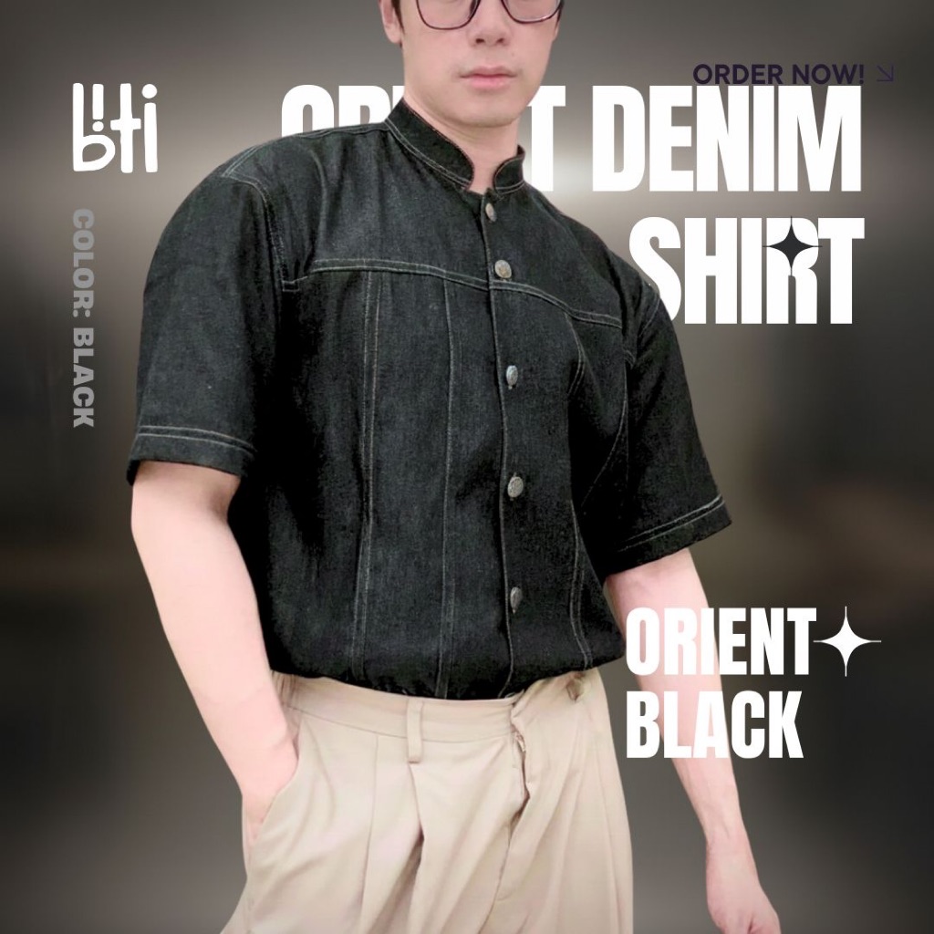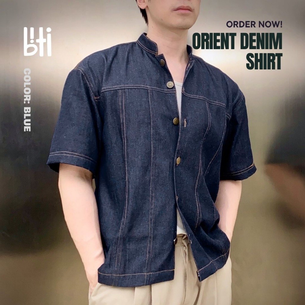 Biti Orient Denim Shirt | Kemeja Outer Koko Denim Jeans Pria Lengan Pendek Kerah Shanghai Oriental