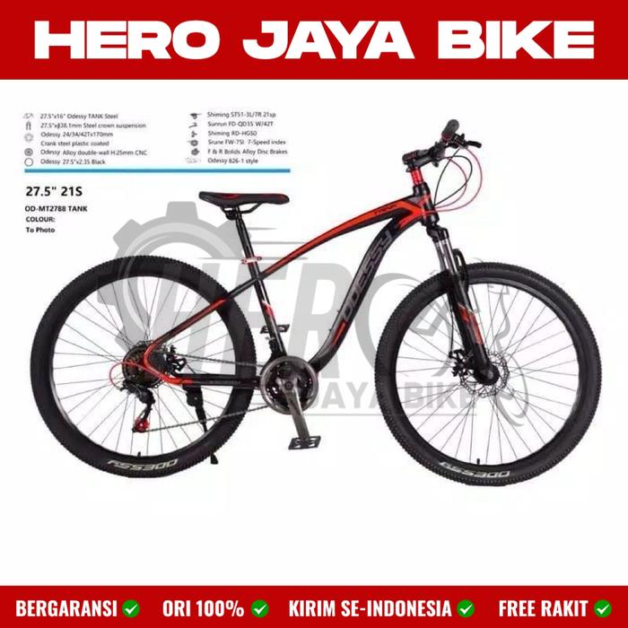 Sepeda Gunung Mtb Odessy Tank Uk 24 26 & 27,5Inch 21Speed Rem Cakram - Orange, 24Inch