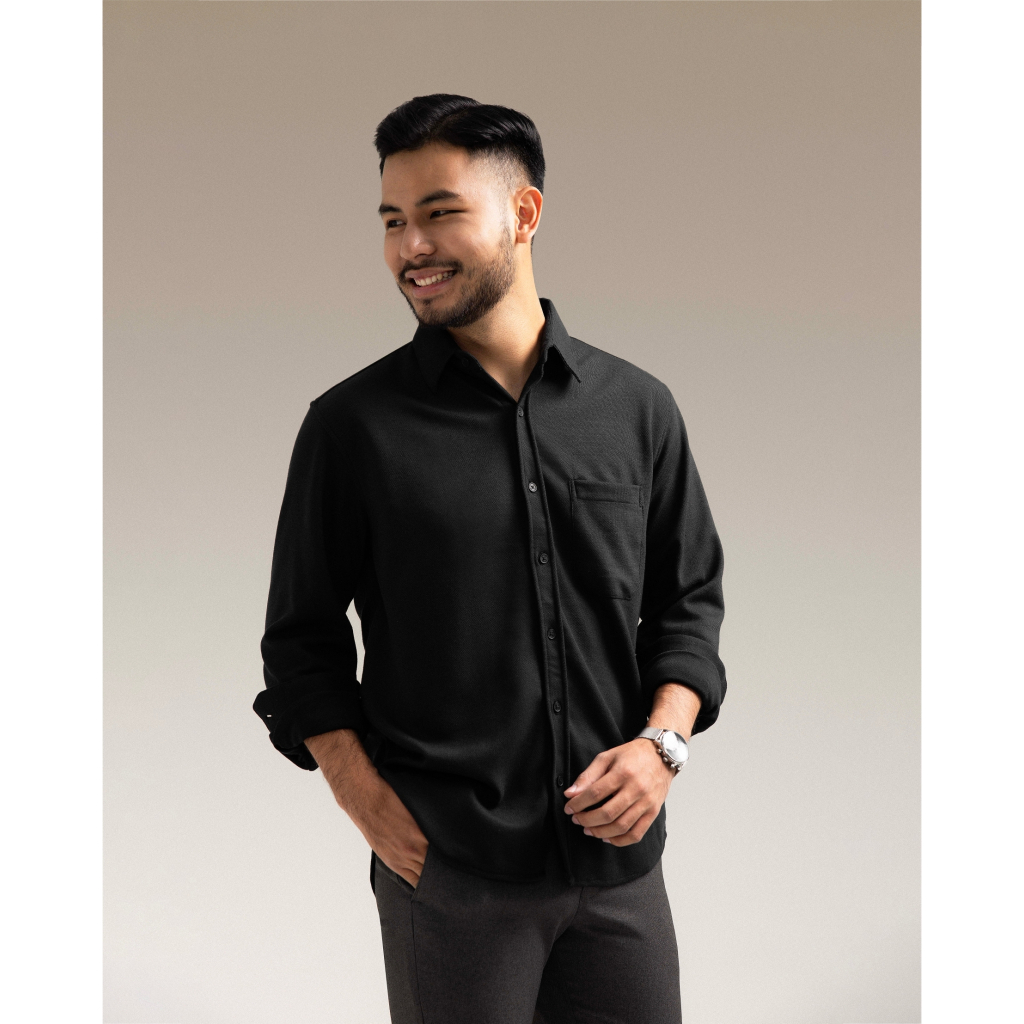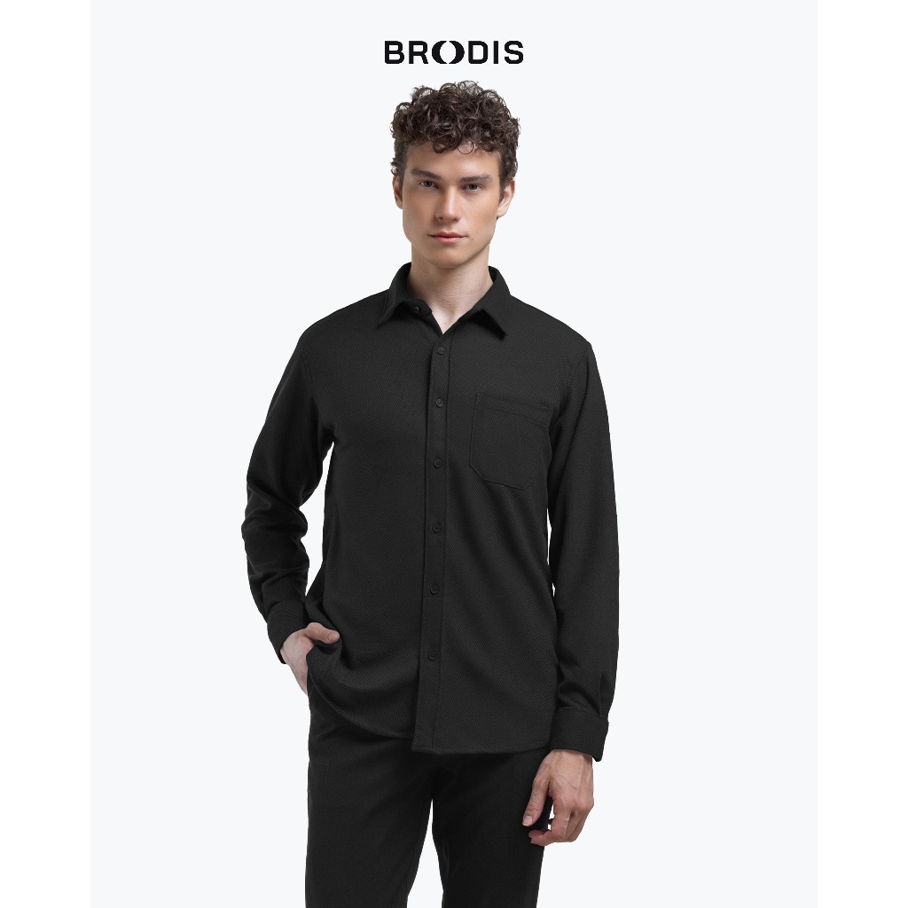 Broodis Kemeja Polos Hitam Cotton Softee Black Lengan Panjang Slimfit