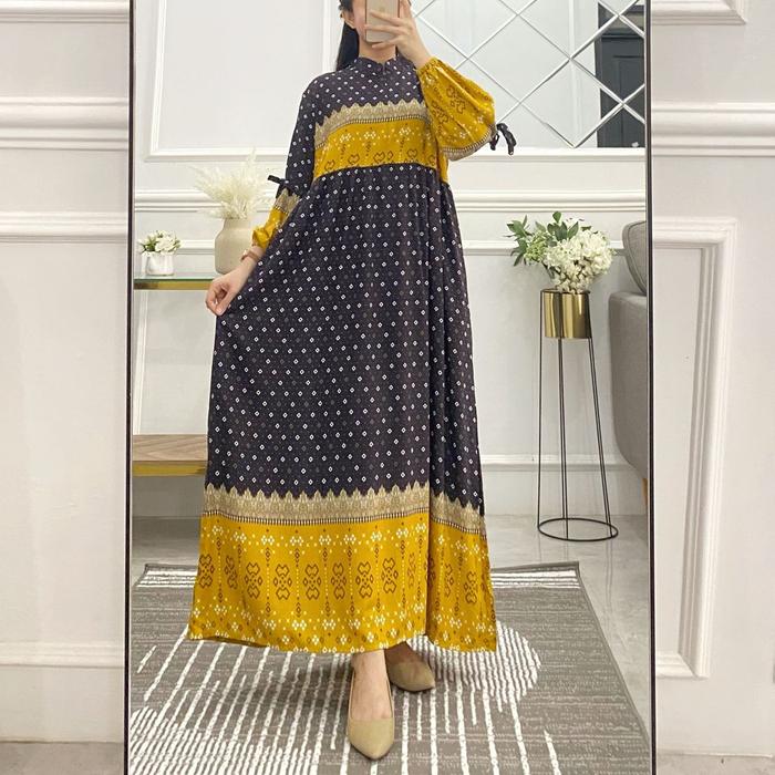 Kamila Dress - Gamis Tali Pita Rayon Motif Premium Busui Friendly Terbaru Kekinian Dewasa Wanita Cantik Lembut Adem Ny
