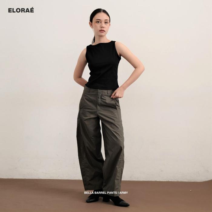 Eloraé – Bella Barrel Pants | Celana Barrel Highwaist Wanita Formal/Casual - Black, Xl