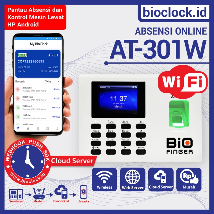 Fingerprint Absensi Jari BioFinger AT-301W USB LAN WiFi WebServer Cloud ADMS Android API Push SDK