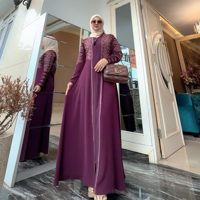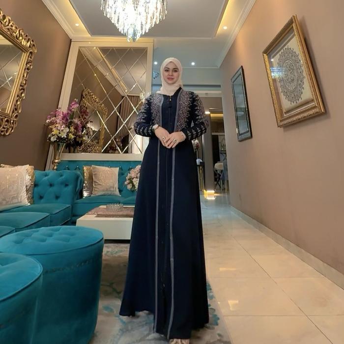 Tanpa Hijab Nazwa Abaya Maheera Dress | Abaya Mewah Payet Dan Bordir| Series Lebaran - Navy, M