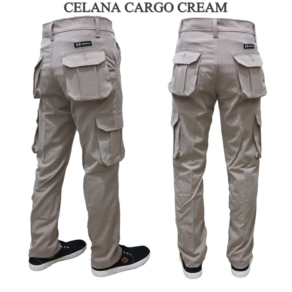 Celana Cargo Panjang Pria Cowok Hitam Abu Hijau Army Cream Berkualitas