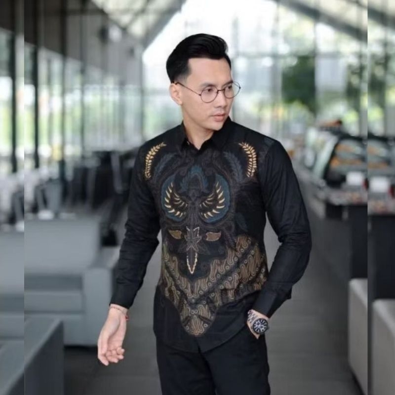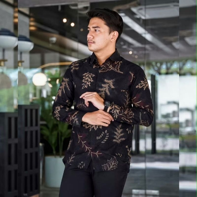 Batik Pria Hitam Kemeja Lengan Panjang Katun
