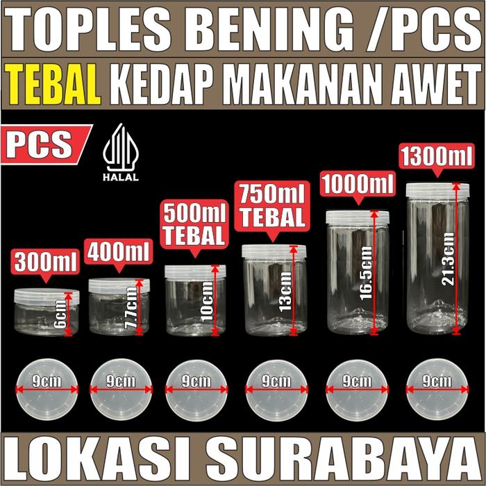 Toples Tebal 300Ml 400Ml 500Ml 750Ml 1000Ml 1300Ml Plastik N Seal Jar Silinder Bening Pet Pcs Sby - 300Ml 35Gr