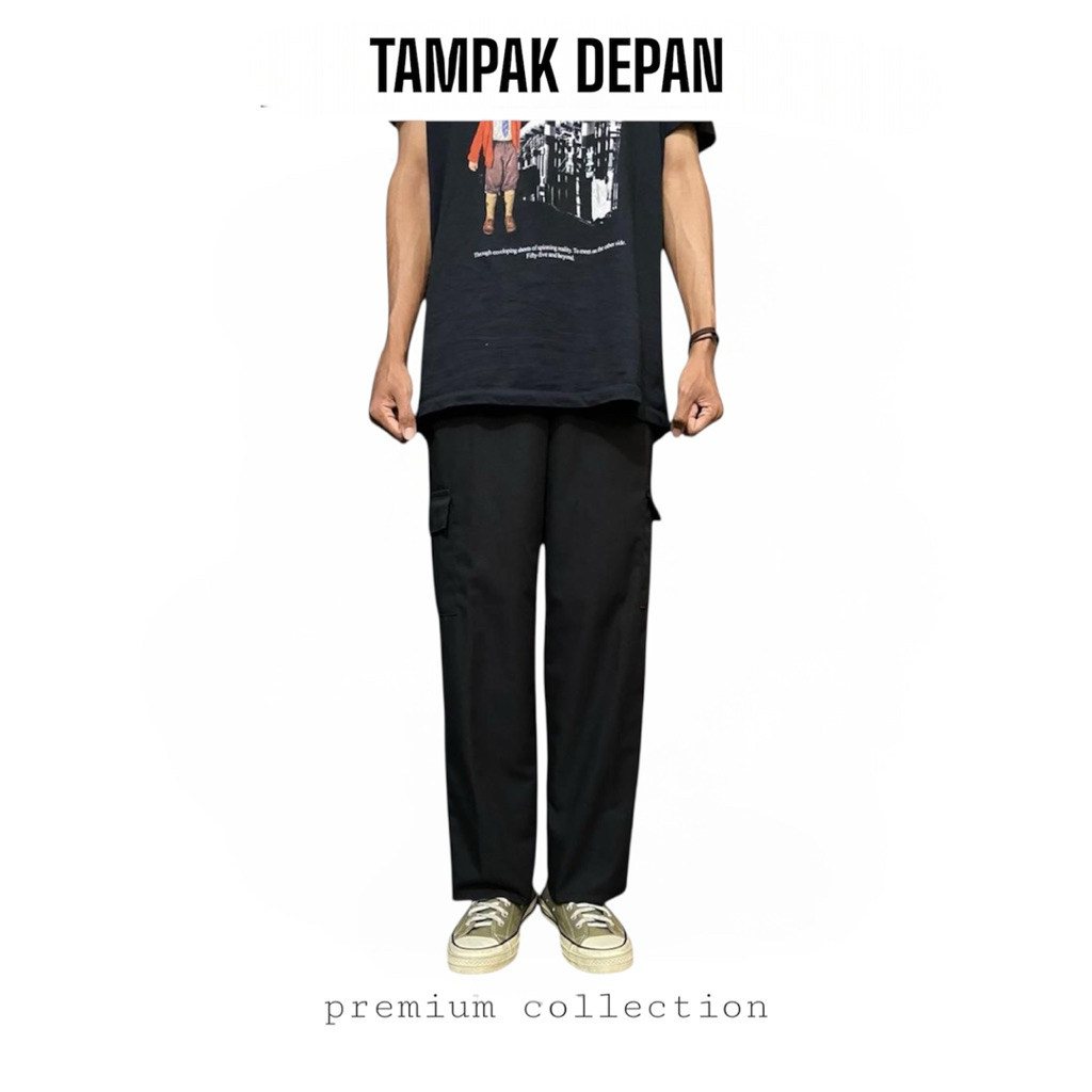 Celana Cargo Panjang Loose Pants Unisex Bahan Tebal Halus Nyaman