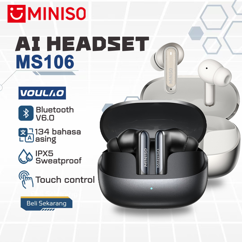 tws miniso ms106 headset terjemahan ai true wireless bluetooth v6.0 in-ear panggilan hd dengan mikrofon noise reduction