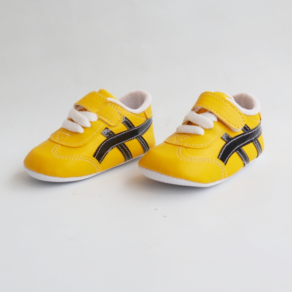 Sepatu Tali Prewalker Kanvas Motif Stripe Bayi Anak Laki-laki Perempuan Usia Newborn 0-12 Bulan
