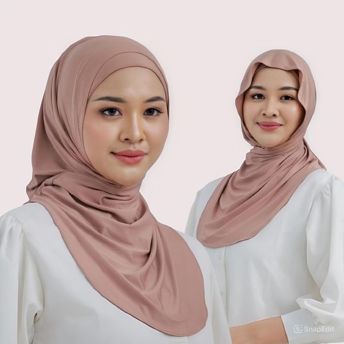 Hijab Instan Inner Meleyot Jersey 2 In 1/Hijab Bergo Jisoo Plus Inner Jersey/Hijab Instan Huma Inner Jersey - Expresso