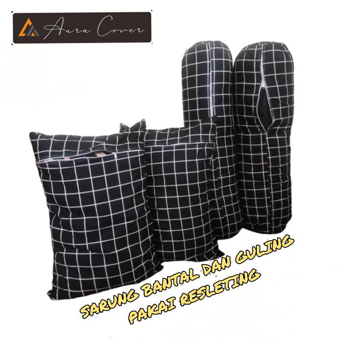 Sarung Bantal Dan Guling Resleting Ukuran Standar Kain Katun - Embos Coklat, Sarban1+1Sargul