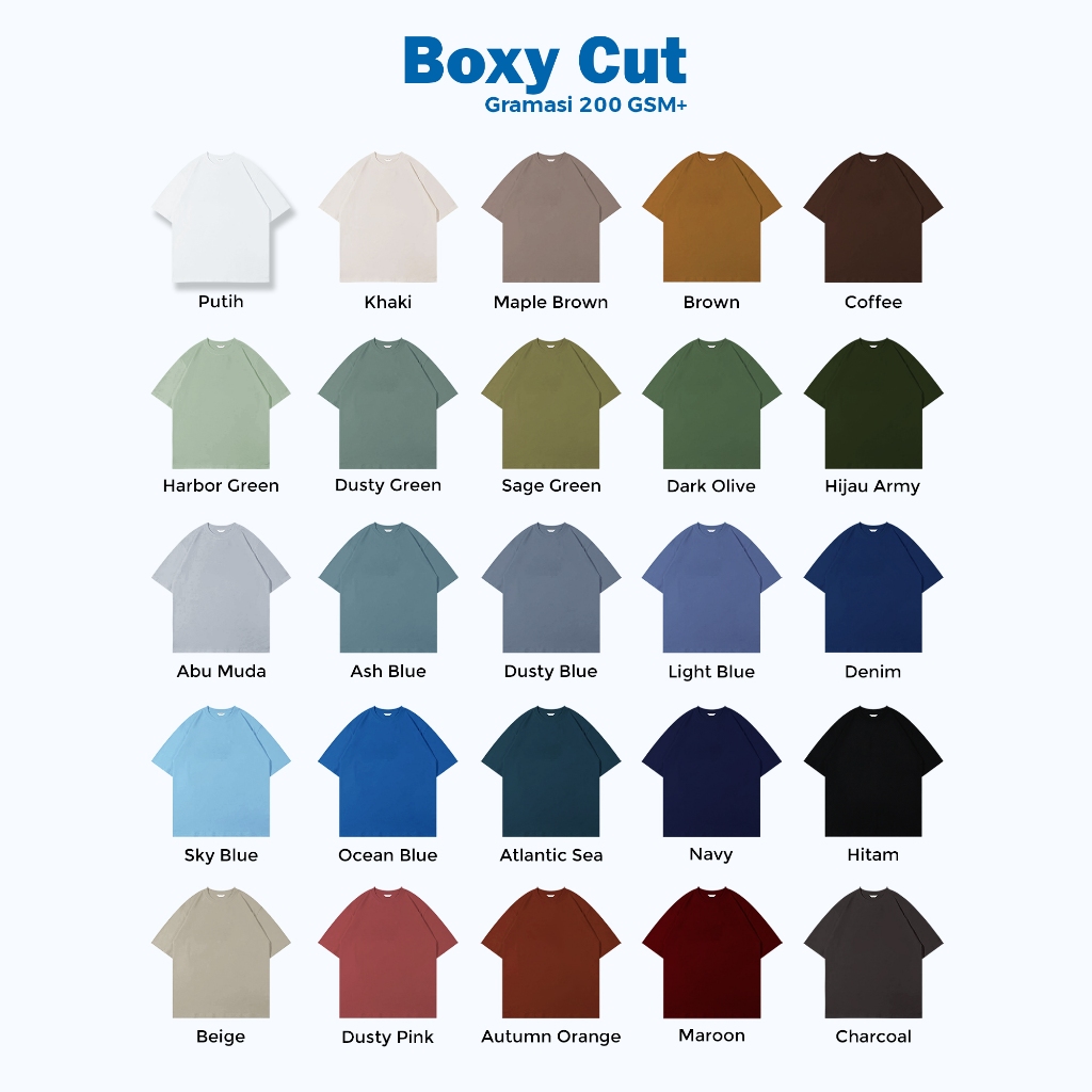 sesuai, BOXY Fit-Charcoal, BOXY Fit-Hitam, BOXY Fit-Khaki, BOXY Fit-Putih, BOXY Fit-AlmondBrown, BOXY Fit-LightBlue, BOXY Fit-DustyGreen, BOXY Fit-AbuMuda, BOXY Fit-MaroonBrgnd, BOXY Fit-OceanBlue, BOXY Fit-DustyPink, BOXY Fit-Navy, BOXY Fit-SkyBlue, BOXY Fit-AtlanticSea, BOXY Fit-SageGreen, BOXY Fit-HijauArmy, BOXY Fit-Coffee, BOXY Fit-BoldDenim, BOXY Fit-AutumOrange, BOXY Fit-HarborGreen, BOXY Fit-DustyBlue, BOXY Fit-Beige, BOXY Fit-AshBlue, BOXY Fit-MapleBrown, BOXY Fit-DarkOlive