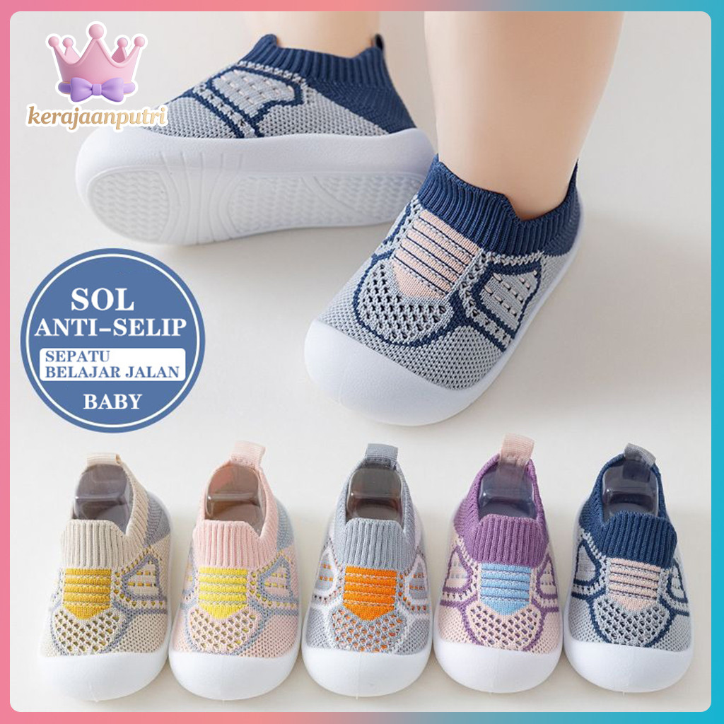 Sepatu Bayi Belajar Jalan 9-24 Bulan - Sol Karet Lembut, Anti Slip, Slip On, Bahan Mesh Nyaman & Bernapas