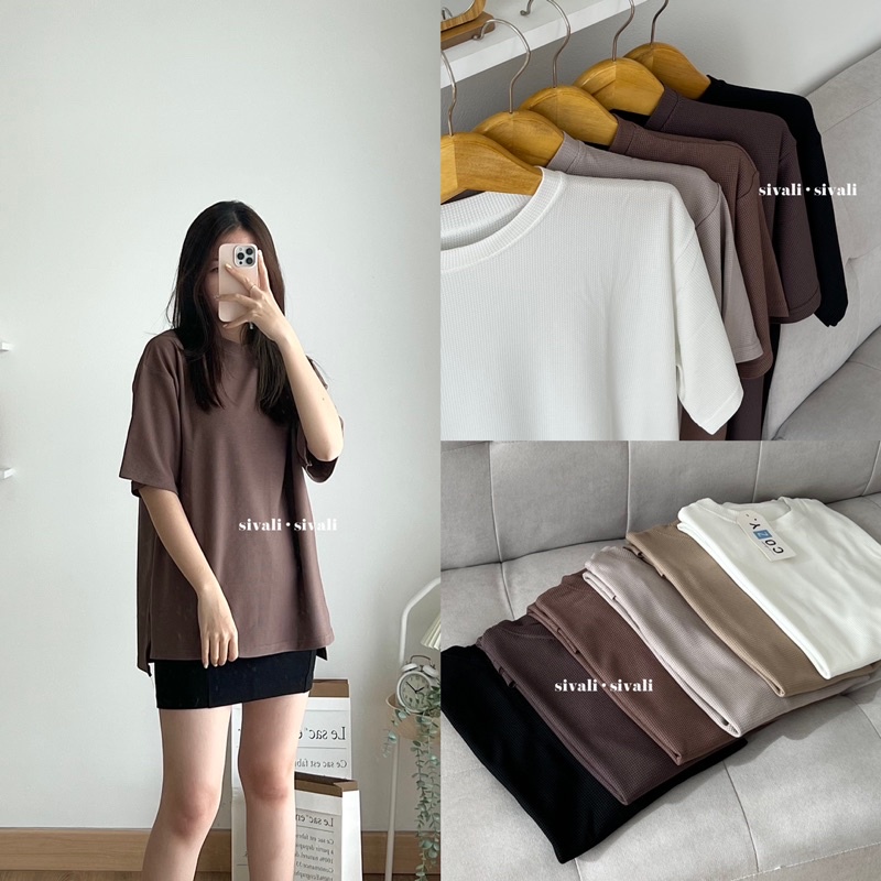 SIVALI Oversize Basic Tee | Oversized Korea T-Shirt with Slit - Kaos Polos Unisex Premium 5300