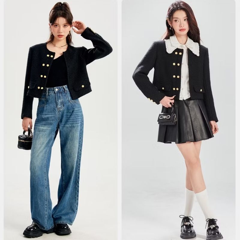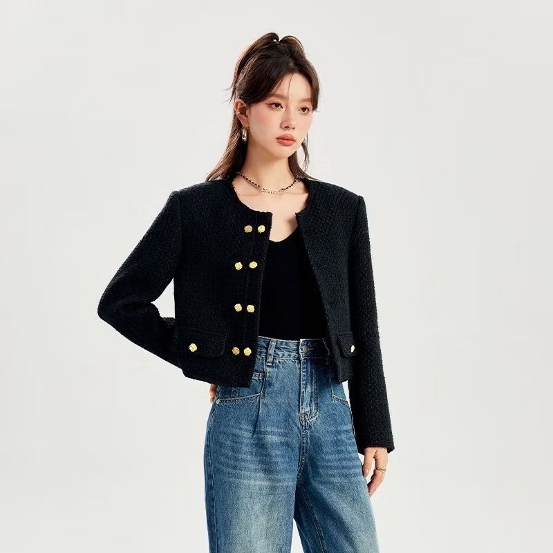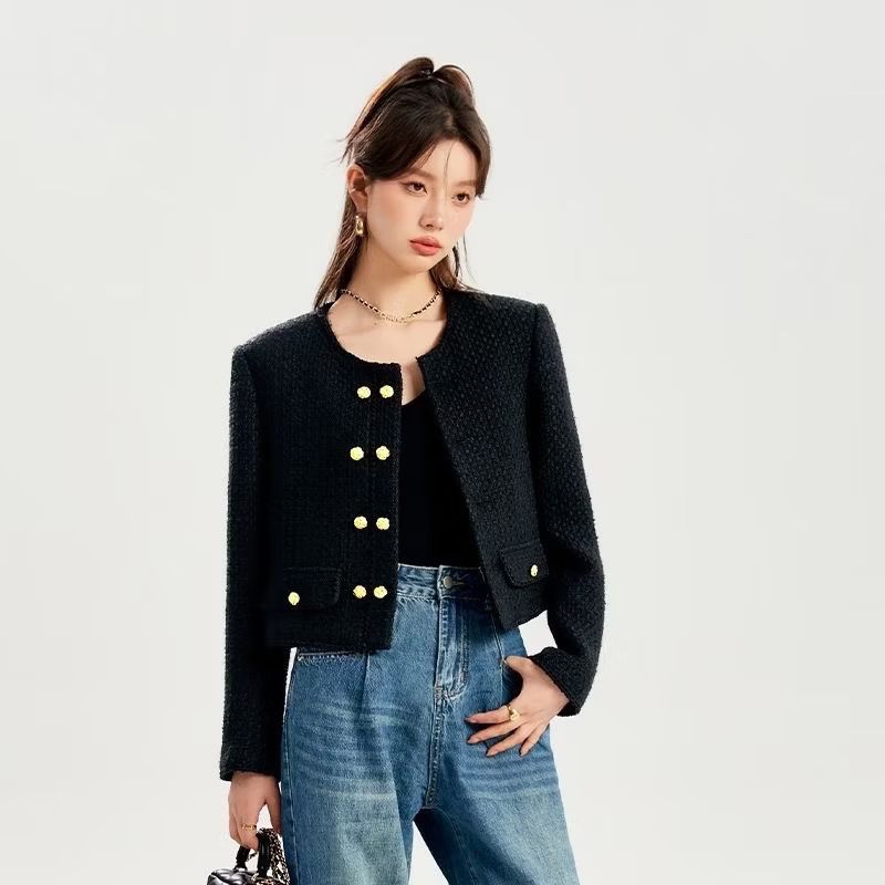 BT-3291 Blazer Tweed Hitam Model Simple Elegant Gaya Klasik