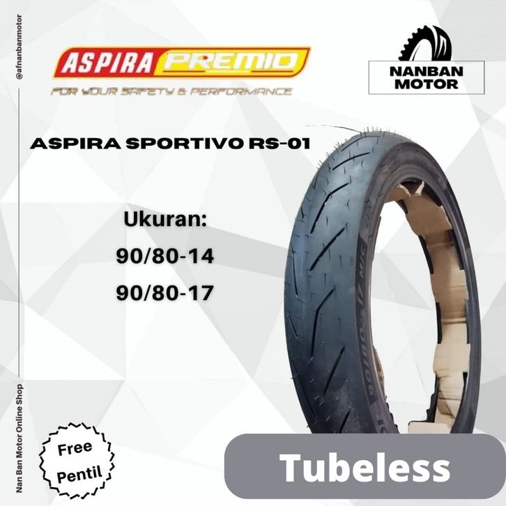 Terlaris BAN MOTOR ASPIRA PREMIO RS-01 UKURAN 90/80-14 & 90/80-17 BAN TUBELESS SOFT COMPOUND Elegan