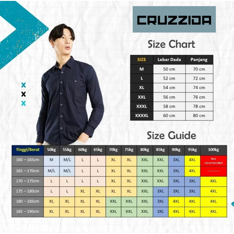 Cruzzida - Kemeja Polos Biru Denim Pria Lengan Pendek Casual Slimfit Matt Katun Cigaret