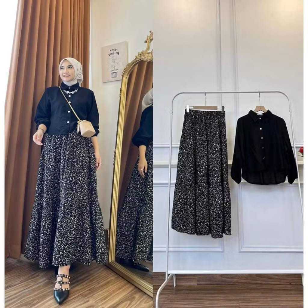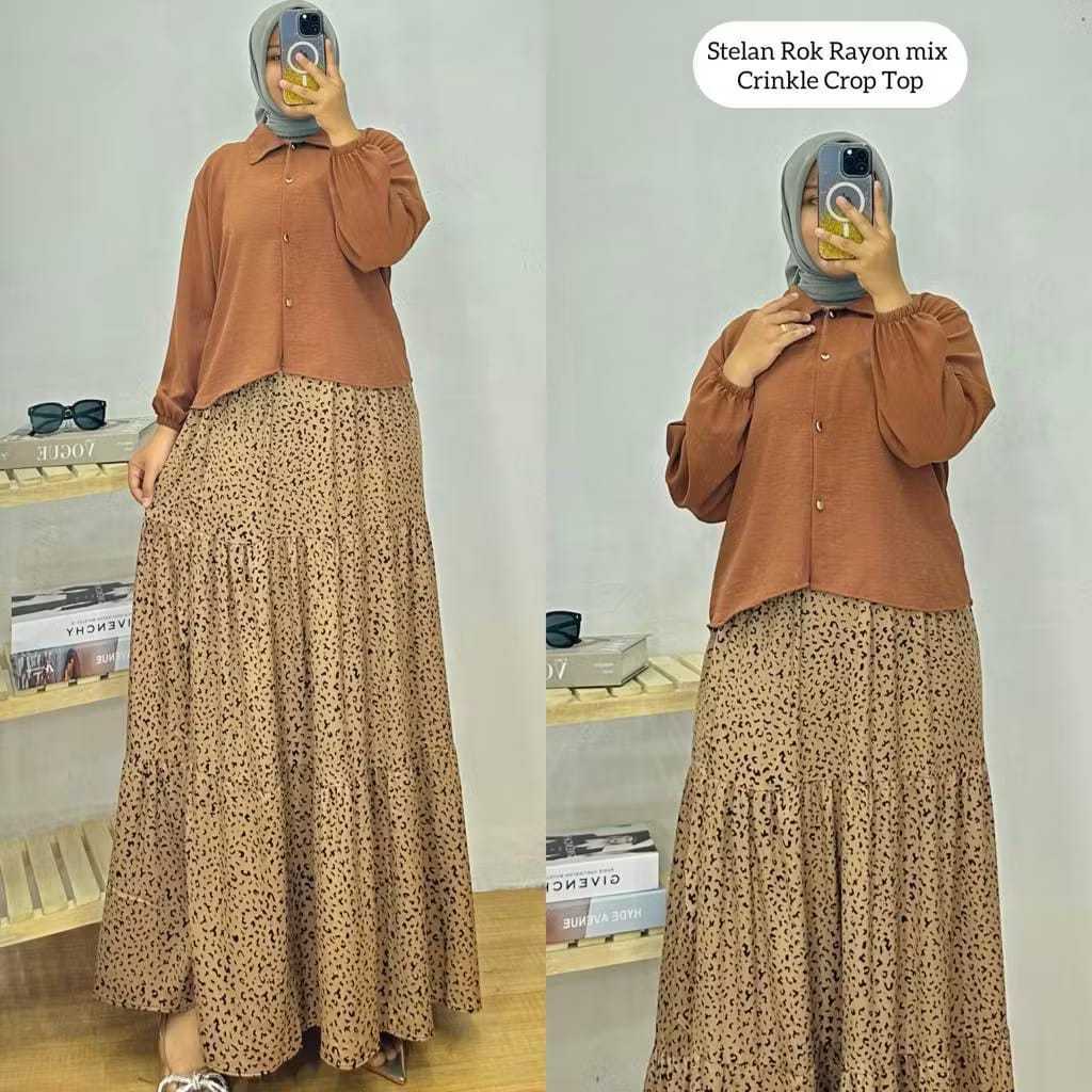 Set Rok Setelan Wanita Kemeja Crinkle Rok Rayon One Set Wanita Kekinian Gamis Lebaran LD 110-120 Baju Lebaran 2026