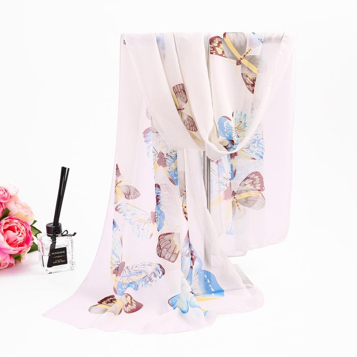 Outer Brukat Selendang Mutiara Pelindung Sinar Matahari Syal Sutra Motif Kupu-Kupu Selendang Sutra Simulasi Cardigan Wan