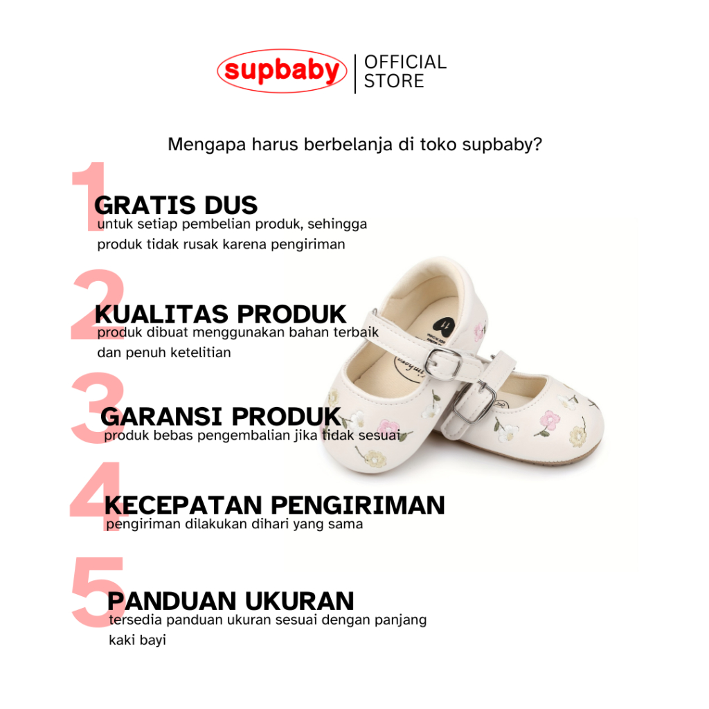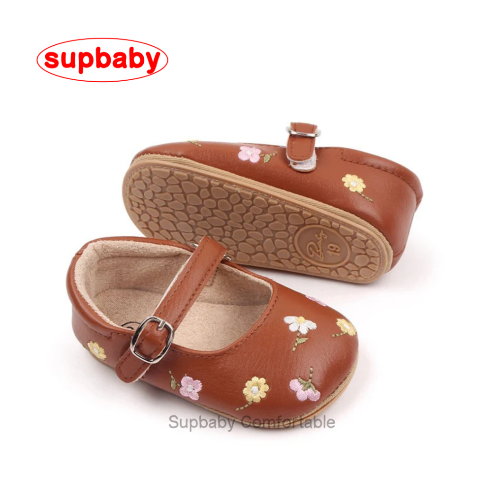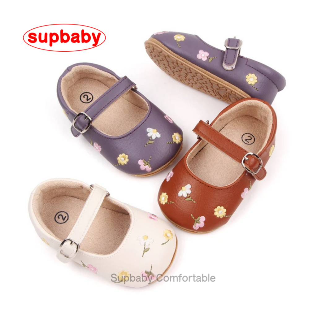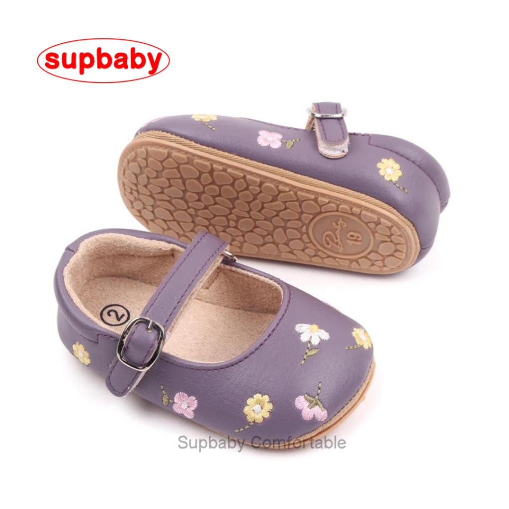 Sepatu Bayi Perempuan Embroidery Flower Usia 0 - 12 Bulan Anti Slip, Sepatu Bayi Perempuan Lucu
