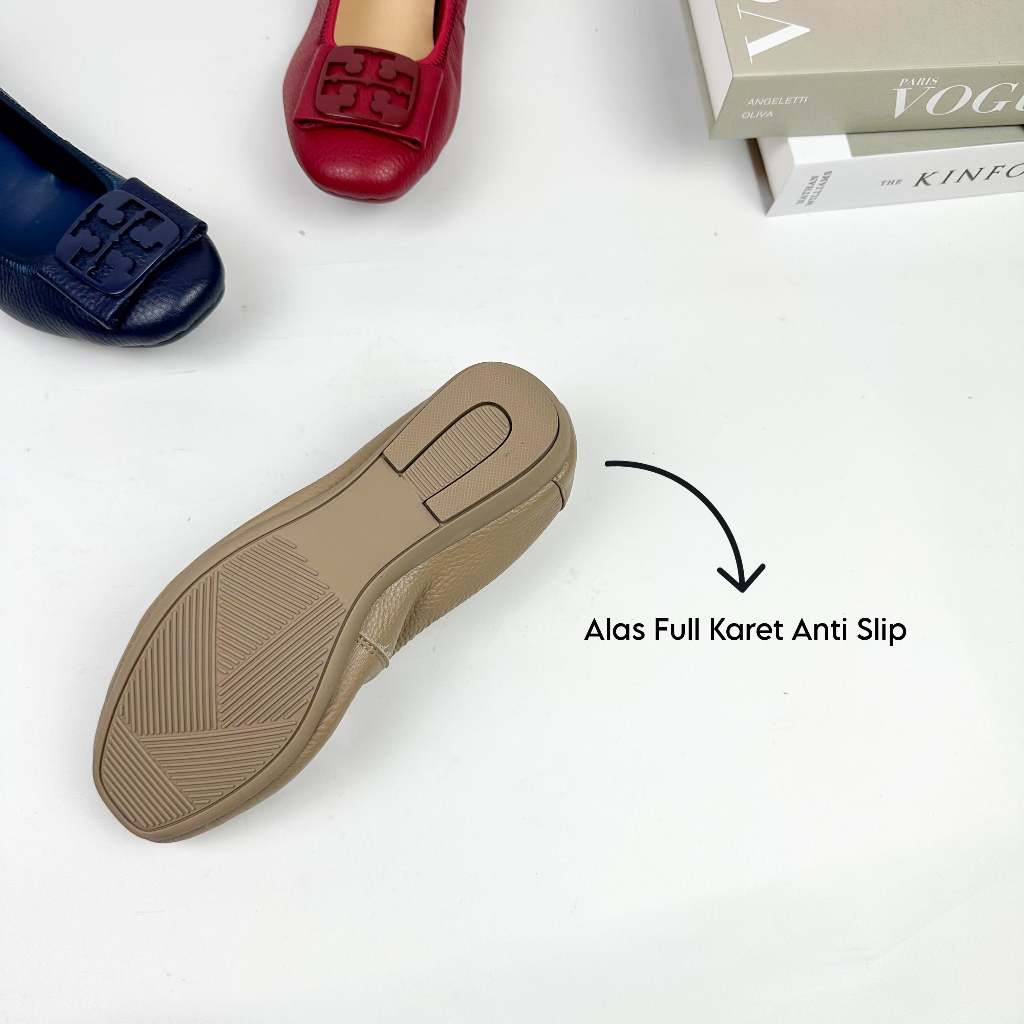 TORY Sepatu Kulit Wanita Flatshoes Tory Logo Petak TB 2246 100 PERSEN Kulit Asli