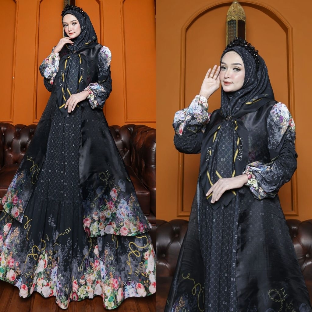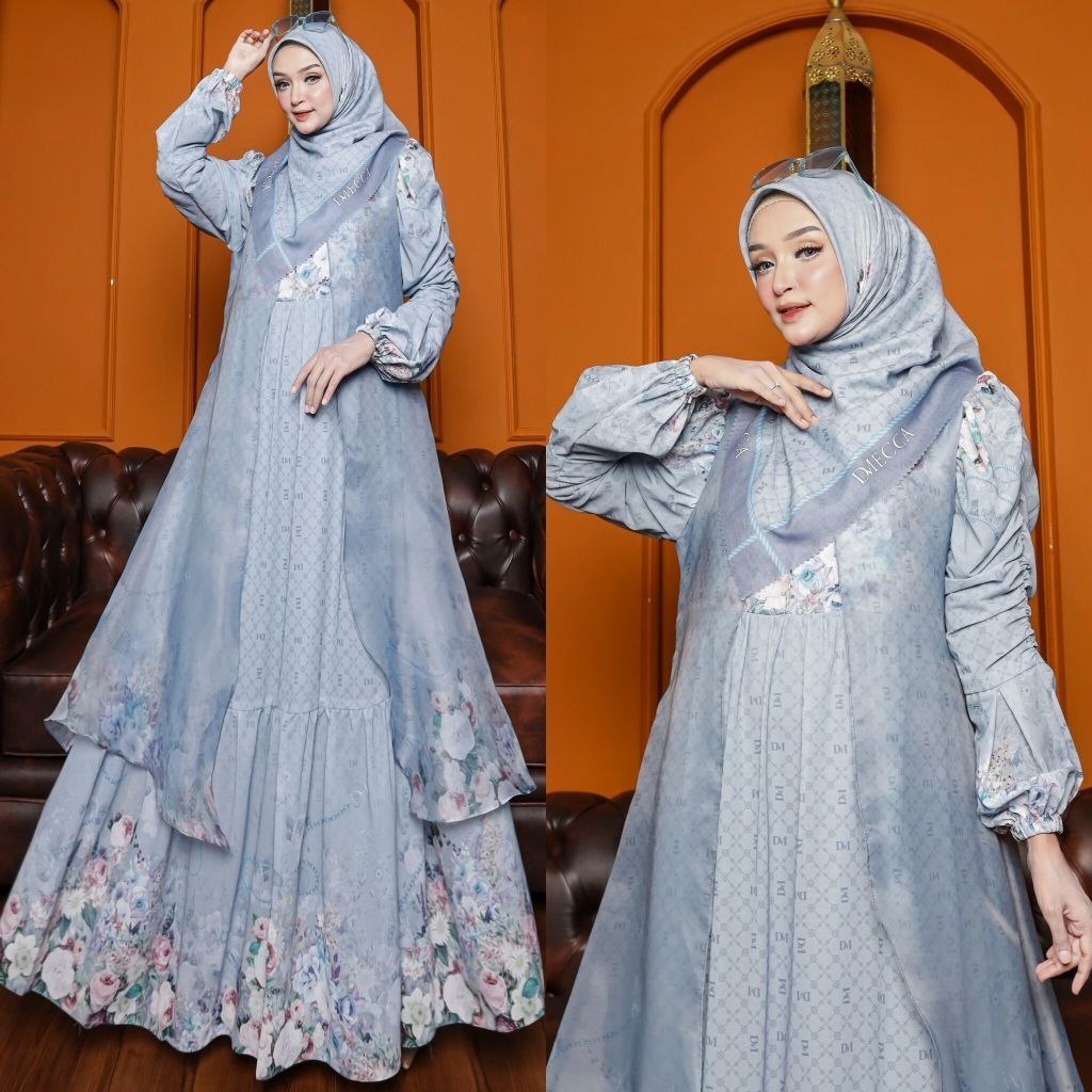 DISKON 70% LAILA SERIES BY D'MECCA SYARI GAMIS CERUTY PREMIUM OUTER CARDI ORGANZA PRINTING SET JILBAB SCARF VOAL