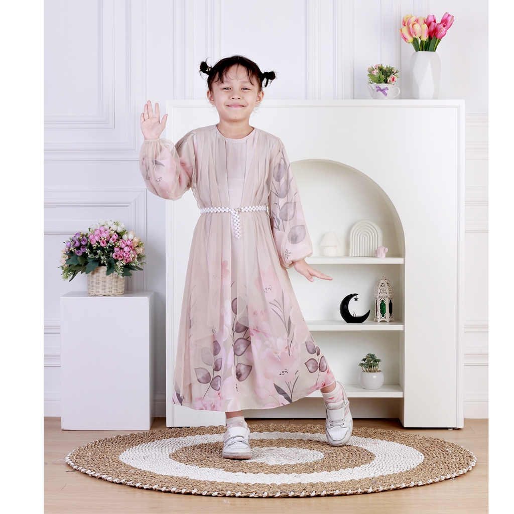 Dungdungkids Gamis Anak Olivia Ceruty Babydoll Outer Tile Free Belt 3 - 12 Tahun Baju Lebaran 2026 Gamis Anak Perempuan