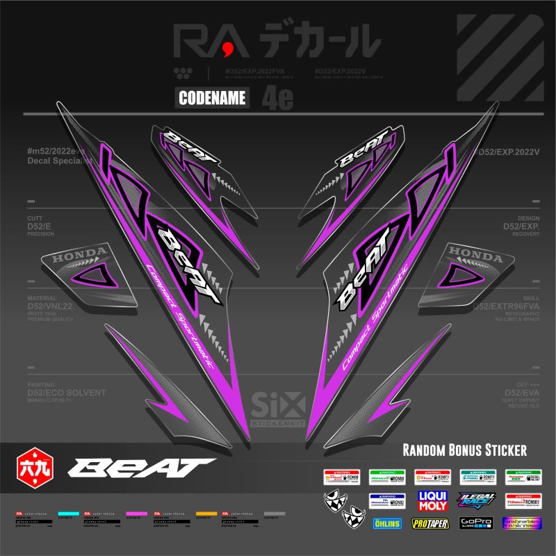 STRIPING TRANSPARAN UV HONDA BEAT LAMA 2007 -2012 MOTIF ORI