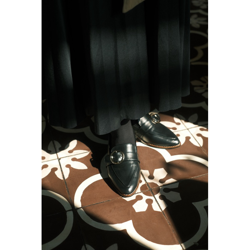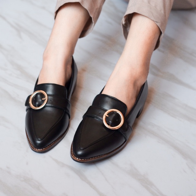 YOVVLI SORAYA Flatshoes Sepatu kerja wanita hitam empuk kulit artificial hak 3 cm