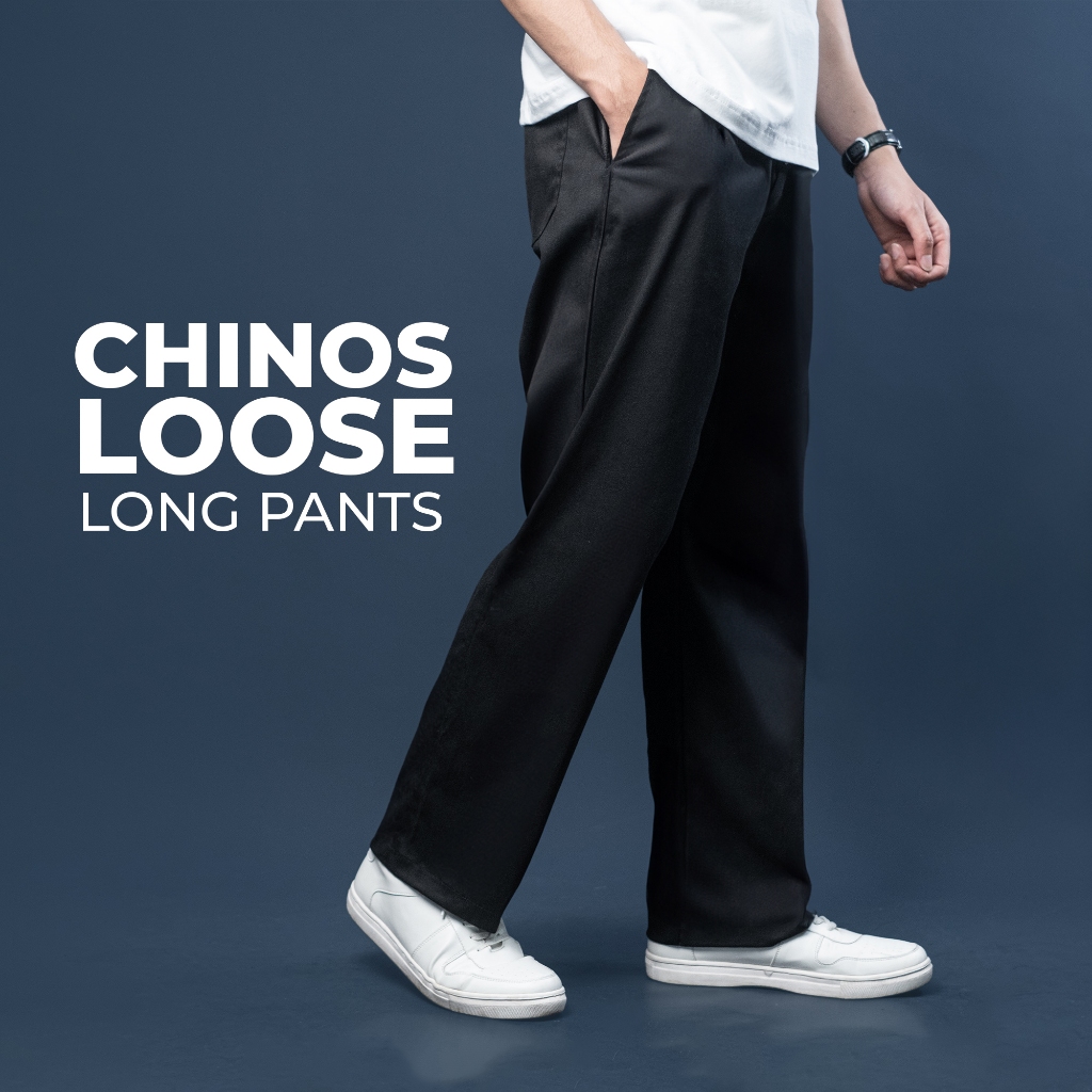 Fatto A Mano Celana Chinos Loose Fit Long Pants Baggy Panjang Hitam Black