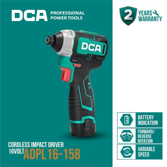 DCA CORDLESS IMPACT DRIVER / MESIN IMPACT DRIVER BATERAI 16V ADPL16-158E