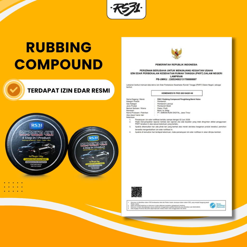 Rs31 Scratch Remover Kompon 4In1 Penghilang Baret Halus, Swirl Mark Aman Untuk Bodi Kendaraan Motor & Mobil Compound Pol